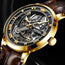 Nahkahihnallinen mekaaninen automaattikello on täydellinen kello vaativalle miehelle. Tämä kello, jonka monimutkainen kovera mekaaninen muotoilu ei ainoastaan esitä korkeatasoista käsityötaitoa, vaan tarjoaa myös ainutlaatuisen, häikäisevän ulkonäön. Ohut nahkahihna lisää hienostuneisuutta, kun taas ajanottotoiminto takaa käytännöllisen hyödyn kaikissa tilanteissa. Tämä ylellinen kello on suunniteltu näyttävästi, olipa kyseessä sitten juhlapukeutuminen tai tyylin lisääminen päivittäiseen rutiiniin.